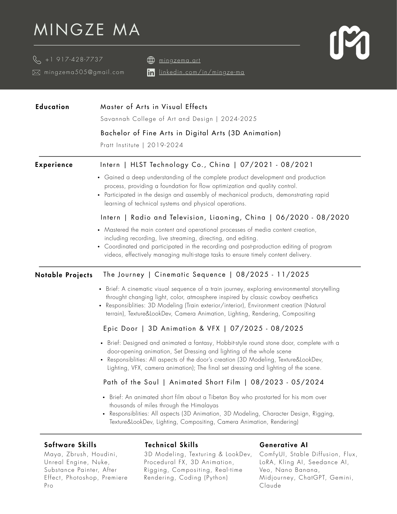 Hi, I’m Mingze Ma, a visual effects artist specializing in environment design, look development, and cinematic storytelling.