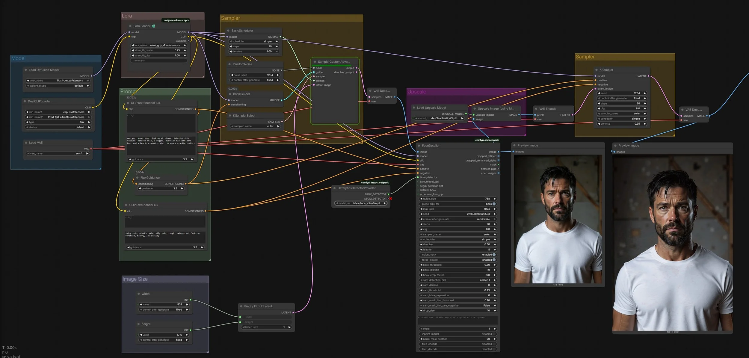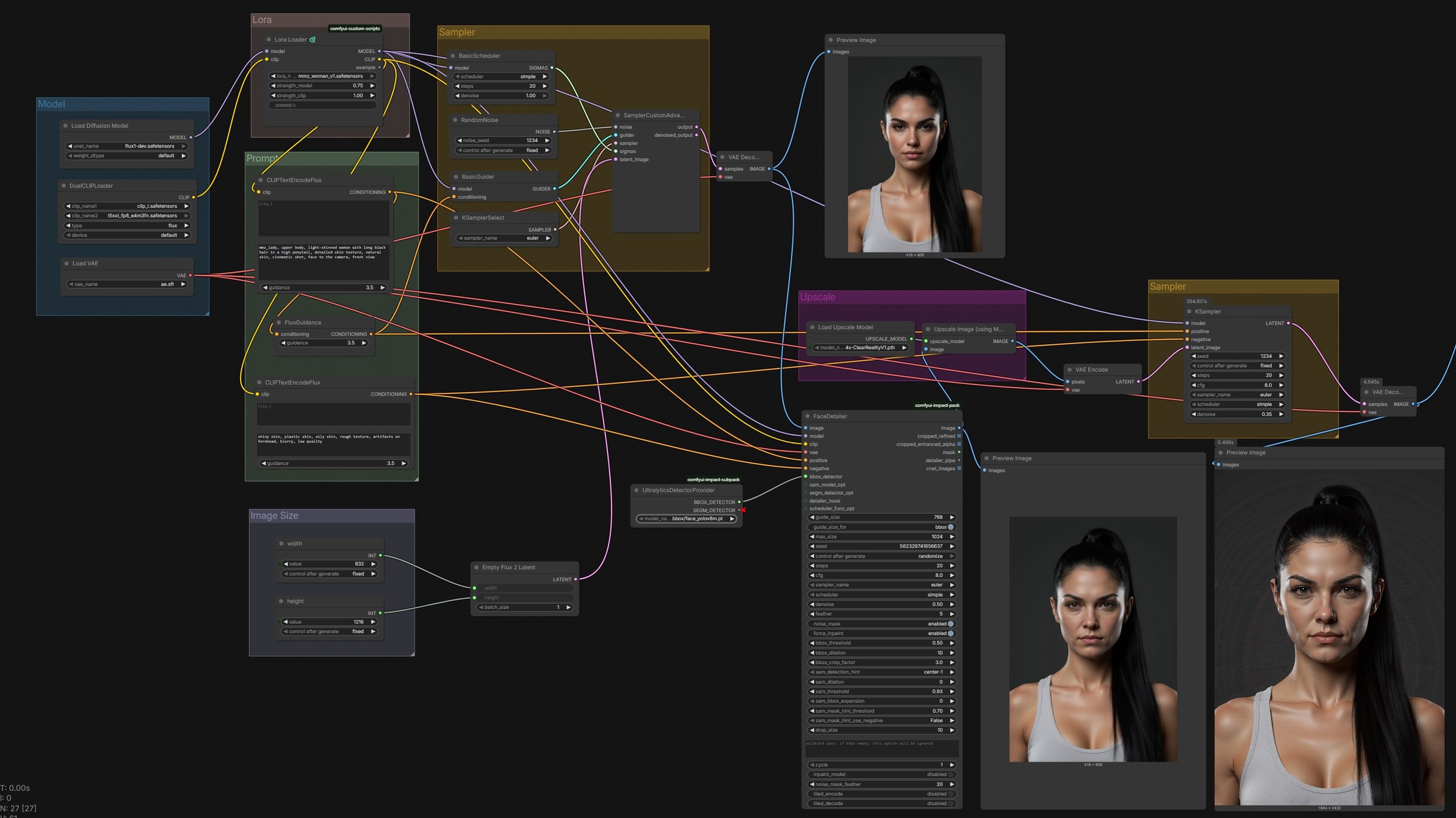High-Fidelity Detailing: Integrated the FaceDetailer node to maintain absolute anatomical consistency and high-resolution skin textures in close-up shots.